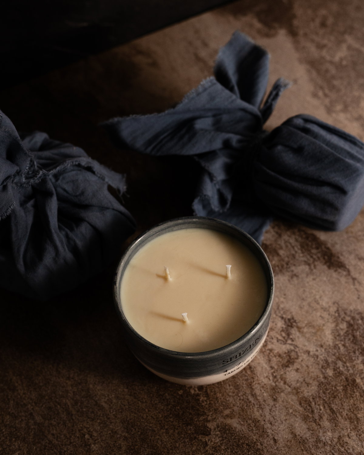 Cada pieza es elaborada artesanalmente en colaboración con Barro Alfarería, lo que convierte a cada vela en un objeto único: las variaciones de esmalte, las transiciones de color y las texturas son parte de su carácter irrepetible.